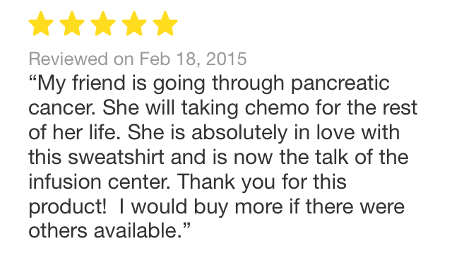 We wanted to take a moment to thank everyone for their continued support and encouragement! We just received a very endearing review from someone who found us on Etsy and is really appreciative of the comfort our One Day Apparel Specialty Sweater has provided. Thank you to everyone for making this such a rewarding and meaningful mission!